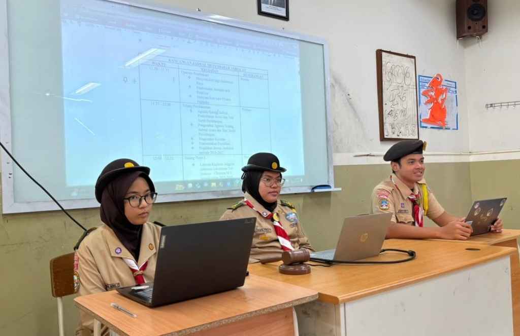 Jakarta, 21 Februari 2026- Ambalan Laksamana Yos Sudarso dan Christina Martha Tiahahu pangkalan SMAS Hang Tuah 1 Jakarta berhasil menyelenggarakan Musyawarah Ambalan tahun 2026. Mengusung tema “Membangun Kepemimpinan yang Berkarakter dan Berlandaskan Trisatya”, forum ini menjadi wadah regenerasi sekaligus penyempurnaan aturan internal organisasi.